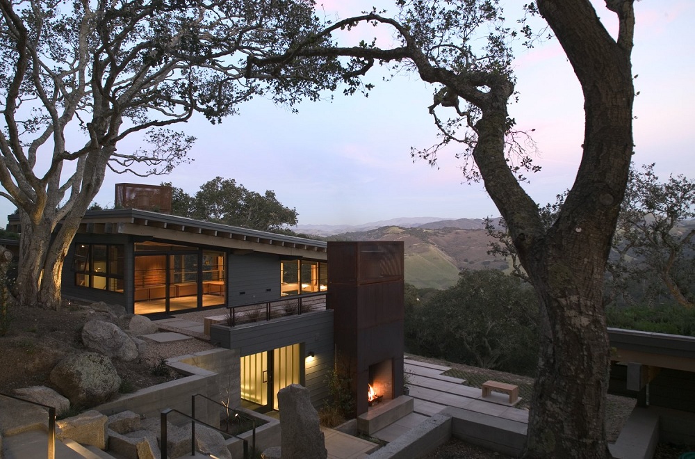 Nằm trong một khu bảo tồn thiên nhiên ở dãy núi Santa Lucia, khu rừng sồi và những đồng cỏ dốc đã tác động mạnh mẽ vào cảm hứng thiết kế của Feldman Architecture cho ngôi nhà Ocho. Sau khi đi qua lùm cây, khách ghé thăm có thể nhìn thấy khung cảnh xa xôi, bát ngát. Khung cảnh rộng mở dẫn xuống từ sườn núi rợp bóng cây đến một sân thượng lớn như một phòng sinh hoạt ngoài trời cho cả gia đình cho phép một ngôi nhà có diện tích khiêm tốn trở nên rộng rãi hơn nhiều.