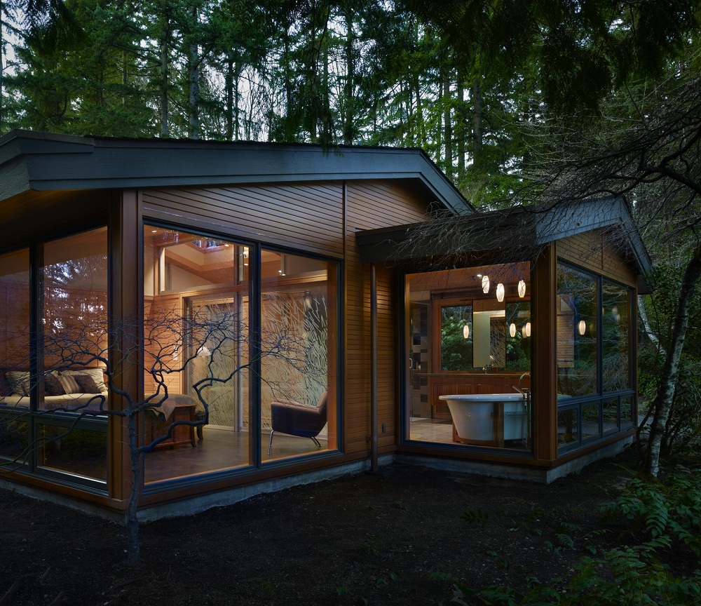Việc cải tạo một công viên nằm trên hồ Forest, phía bắc Seattle trở thành một ngôi nhà là công việc khó khăn. Với diện tích rộng nên ngôi nhà gồm một nhà bếp lớn, phòng ngủ, phòng tắm, phòng làm việc. Các cửa sổ bằng kính lớn được thiết kế để đón ánh sáng tự nhiên cho nội thất mềm mại hơn. Phía ngoài một khu rừng lớn bao quanh ngôi nhà khiến cảnh vật càng hoang vu, kỳ bí.