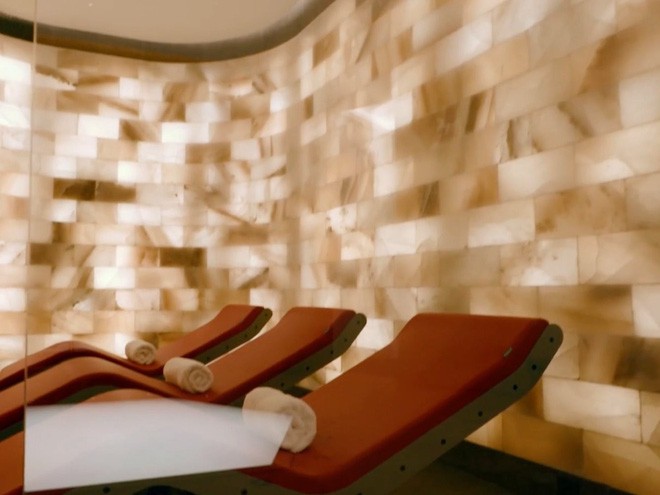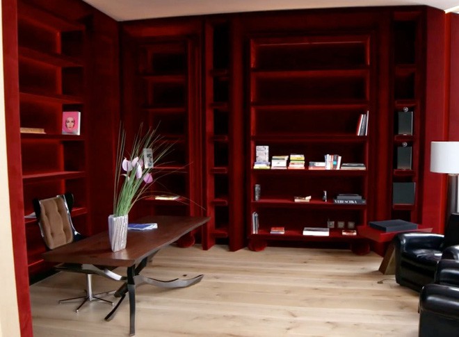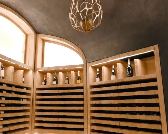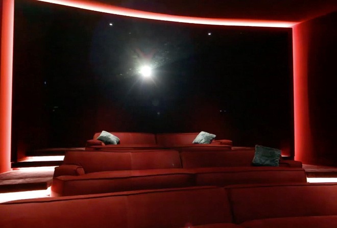 ... nơi phong cách xa hoa thực sự hiện hữu. Các tiện nghi dưới tầng hầm của căn nhà gồm một rạp chiếu phim với giường nằm tông đỏ.