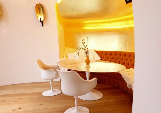 Một góc phòng dành cho bữa sáng ở tầng trên mặt đất. Tường của căn phòng này được trang trí bằng vàng 24 karat…