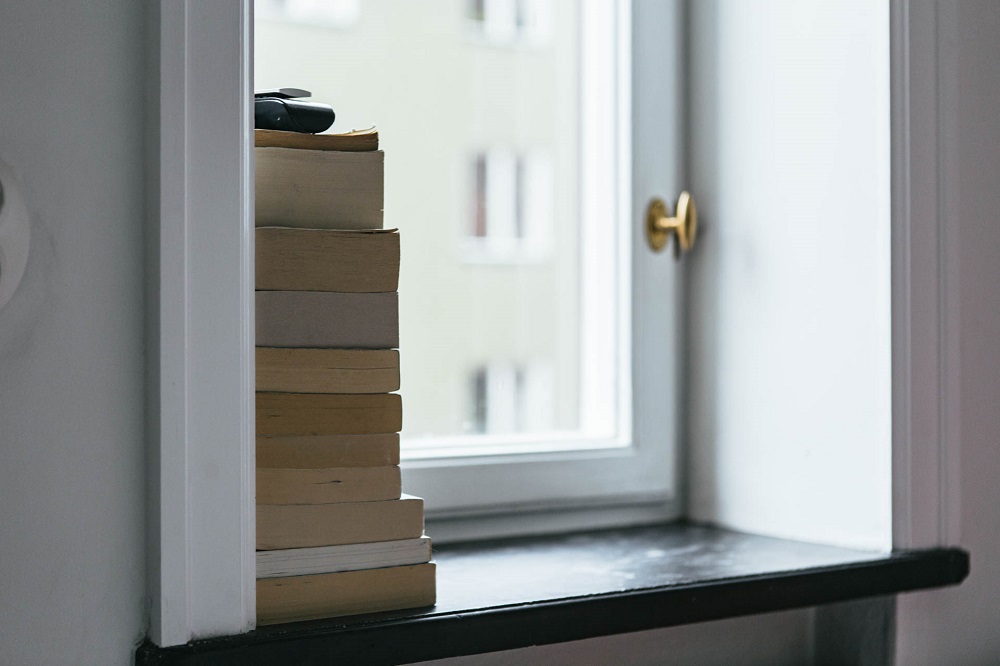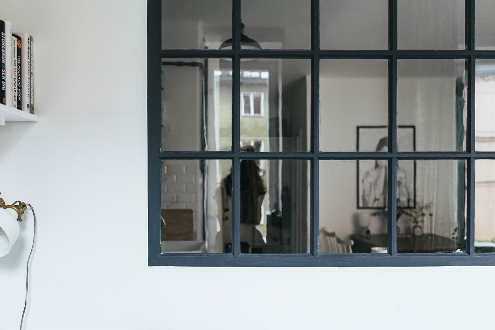 Cùng một ghế sopha nhỏ êm ái được coi như gian tiếp khách và đọc sách luôn, nó sát với cửa sổ để đón ánh sáng chan hòa. Thêm đó, một kệ sách nhỏ cũng được gắn trên tường, ngay sau sopha để tiết kiệm không gian bên dưới.