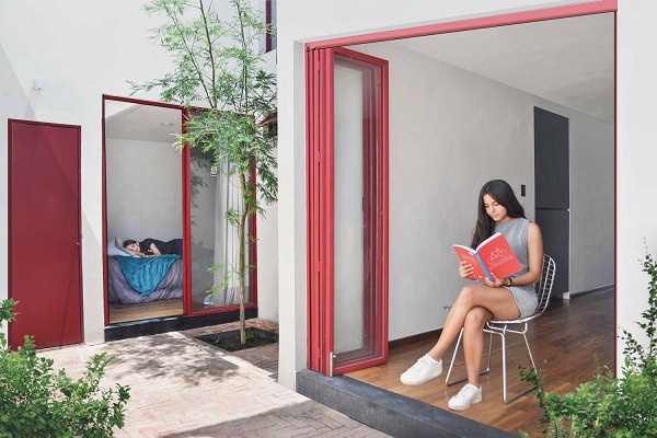 Sự hòa hợp của gam đỏ sắc rực với gam trắng nhẹ nhàng mang đến nét tinh tế rất riêng cho cho ngôi nhà.