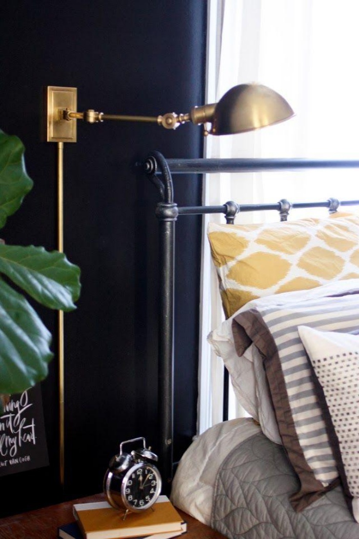 Màu đen luôn toát lên nét đẹp bình yên, cá tính. Khi kết hợp bảng màu trung tính với sắc độ trầm, màu đen của đèn gắn đầu giường sẽ giúp không gian nghỉ ngơi đẹp yên tĩnh và sang trọng hơn.