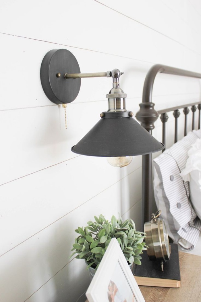 Màu tường đen nhạt hoặc màu xám sẽ là màu nền vô cùng thích hợp giúp những chiếc đèn sơn đen gắn tường thêm cá tính.