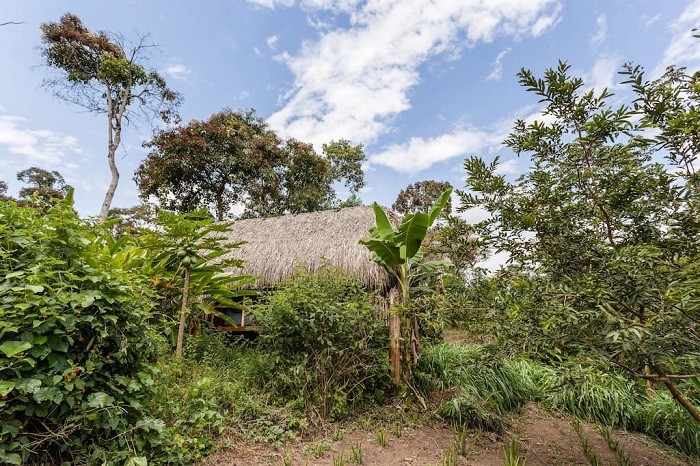 Nhìn từ xa, có thể ngôi nhà này sẽ làm cho bạn thất vọng toàn tập vì trông nó khá nhỏ bé, lụp xụp và lọt thỏm giữa rừng xanh rộng lớn.