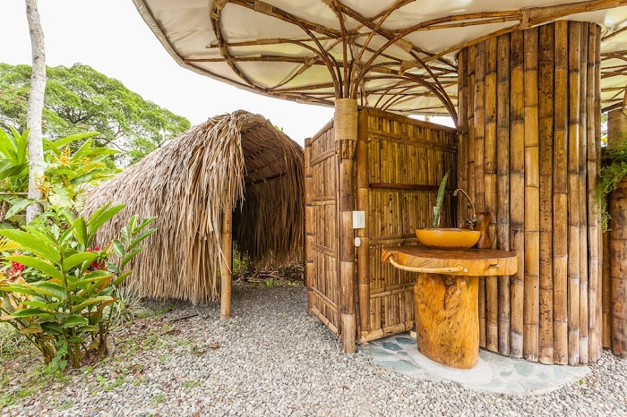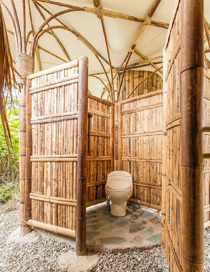 Ngay cả nhà vệ sinh của ngôi nhà cũng đặc biệt như thế này nhé. Toàn tre và nứa bao quanh không gian thôi.