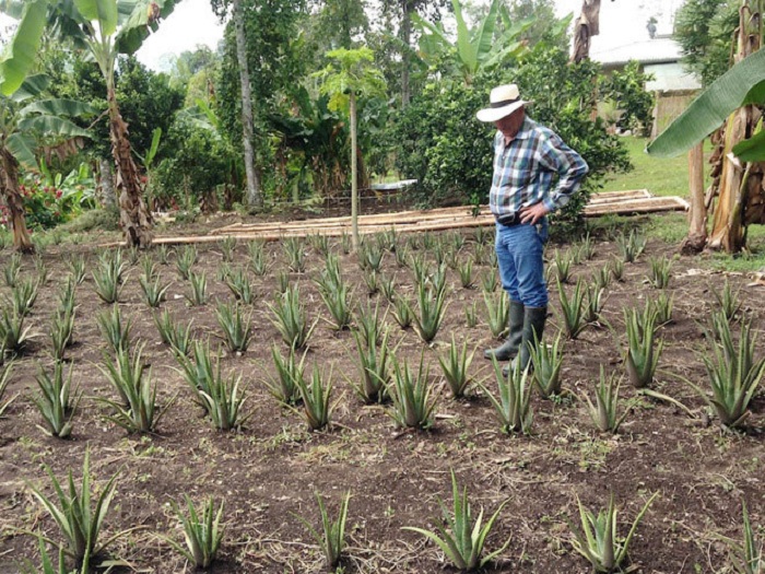 Chủ nhân ngôi nhà cũng trồng khá nhiều những thực phẩm sạch quanh nhà mình, ở đây bạn đang nhìn thấy là một khoảng vườn nhỏ trồng cây nha đam.